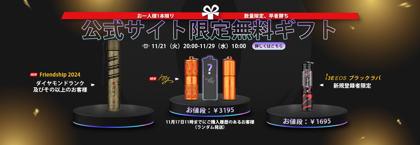 O-Fanの皆様の忠誠と献身がOlightの大きな支えとなっております。皆様に心から感謝いたします。そして、この特別な時期に向けて特別な準備を進めていることをお知らせいたします。 ブラックフライデーの期間中、OLIGHTでは期間限定セールとして、会員レベルに応じて異なるプレゼントをご用意しております。このプレゼントが2024年の到来を告げ、あなたの進むべき道を照らすことを願っています。