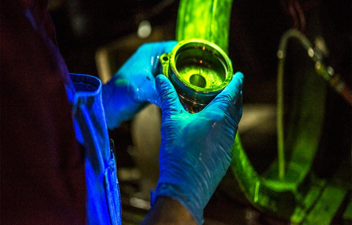 暗い部屋では、これによりひび割れに高コントラストの色差が生じ、非常に小さな欠陥も識別できます。