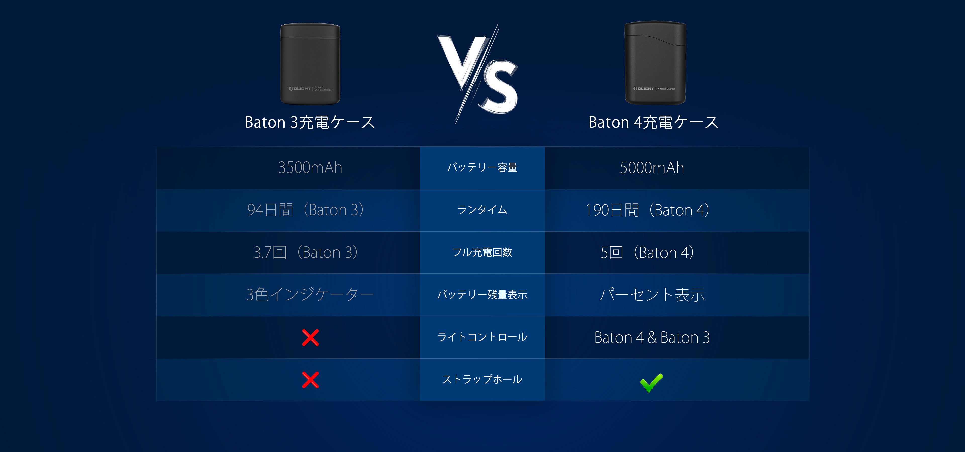 OLIGHTはBaton 4と同じようなサイズのライトを多数発売していますが、そちらでもこの充電ケースを使用できます。