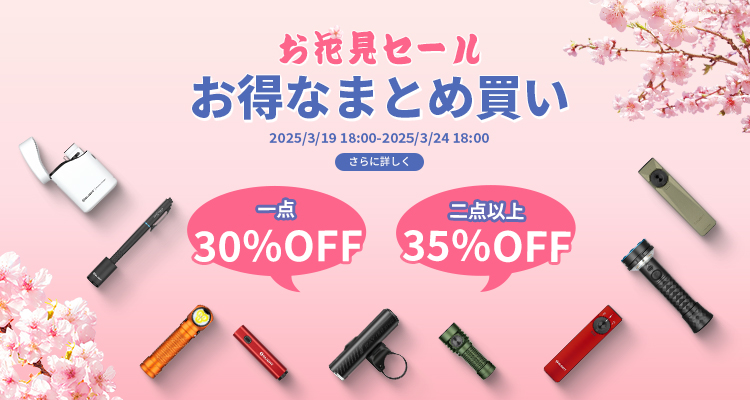 春の訪れとともに、万物が目覚める季節がやってきました!春は花見、ハイキング、キャンプに最適な季節の始まりです。Olight Japanはこの美しい春を彩るために、特別な【花見応援】キャンペーンを開催します。桜の木の下を散歩したり、友達とキャンプしたりするのに最適な高性能懐中電灯を携帯すると、春のアウトドア体験をより快適で安全なものにすることができます。この春、Olightの照明アイテムがあなたの最高のパートナーとなることでしょう。