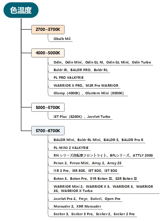 OLIGHT製品の色温度一覧表