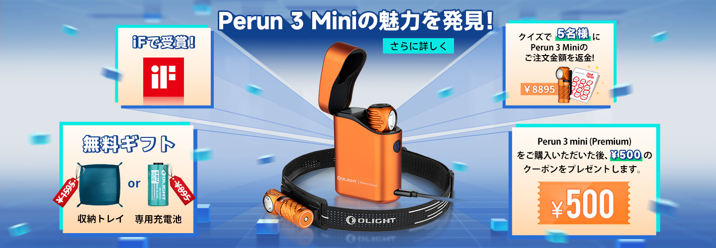 「Perun 3 Mini」単体またはセットをご購入いただくと、次回使える500円OFFクーポンをプレゼント!