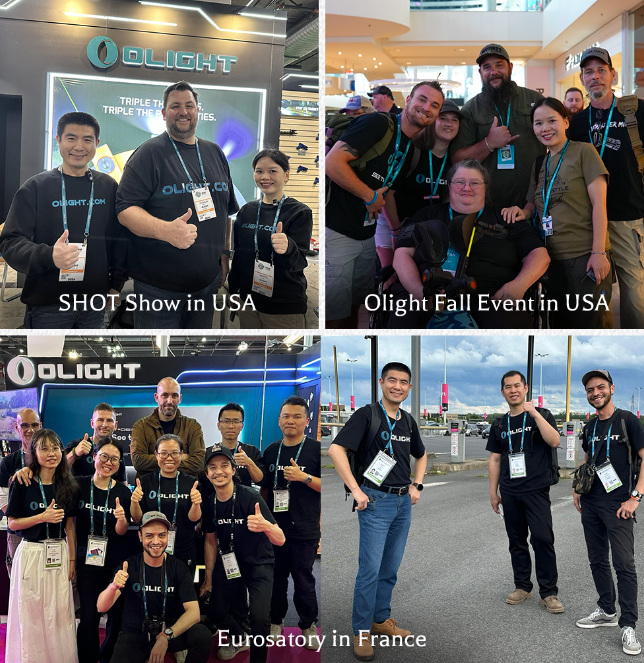 これらのイベントに参加するために何百kmも旅した人もいれば、Olightファンのメイさんは、2年連続で秋のイベントに参加してくださりました。私たちがヨーロッパで参加した展示会では、シリルさん、メヒディさん、 エンリケさんのようなファンは、ほぼ1週間、ボランティアとして ブースを手伝ってくれました。