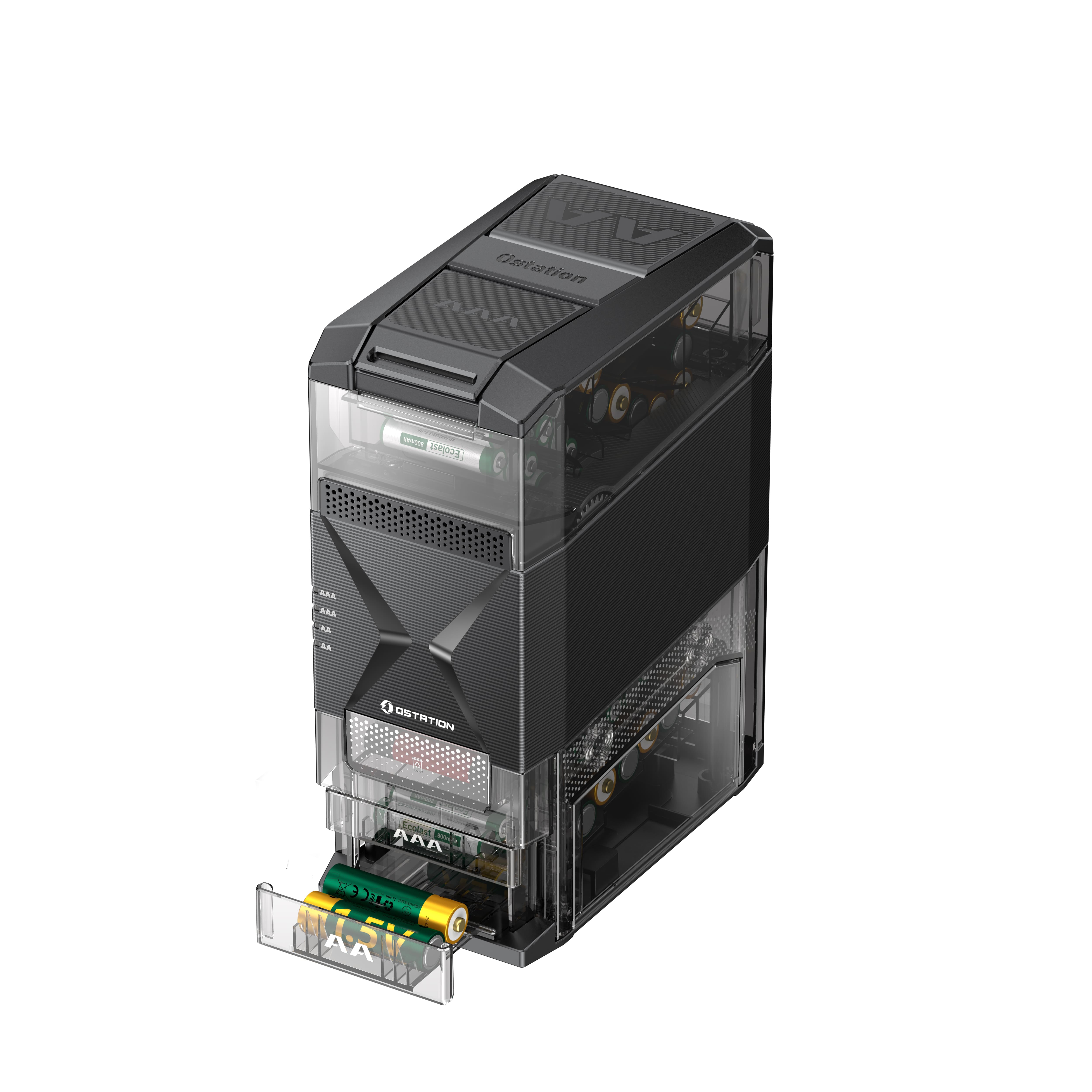 - Ostation X: 最大級の収納密度と、高速なマルチスロットAA充電を実現。