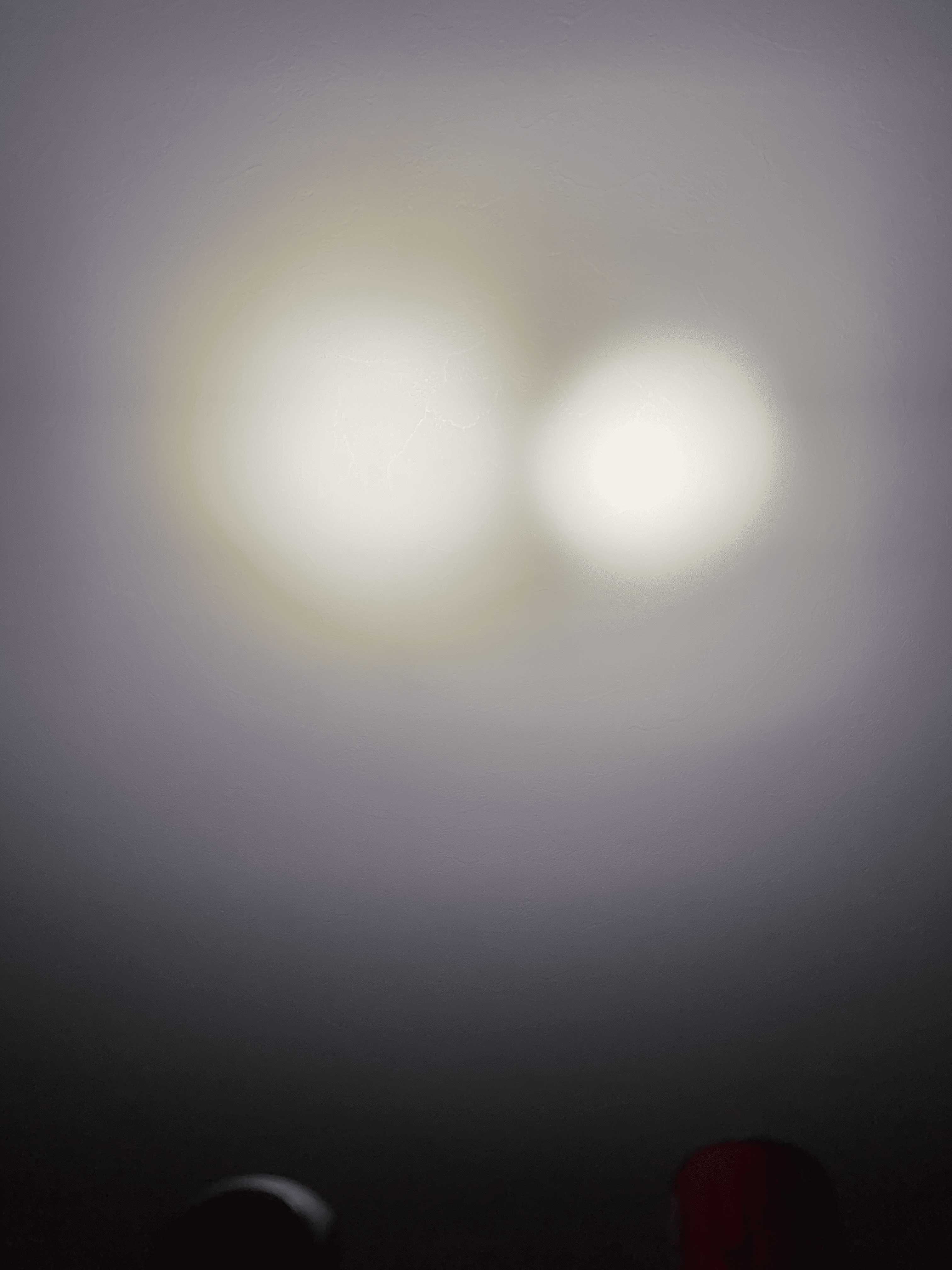 上の写真は、左側がPerun2miniで、右側がwarrior3sです。くっきりしたスポットではありません。照射距離は最大150mで最大出力は1100ルーメンと高性能です。