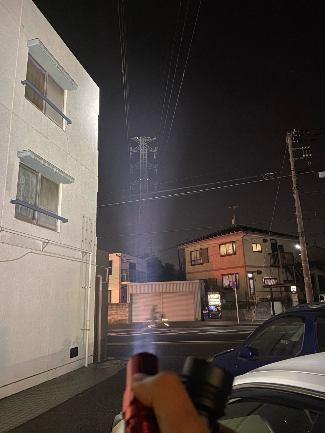 実際に外での使用ということで、自宅から出ると割とすぐ近くにかなり高い送電線がありますのでそこをターゲットにしました。