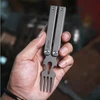 完全な金属製: フォークはチタン合金の「ブレード」とハンドル、および金属部品のみを含む他のステンレス鋼のハードウェアで構成されている。